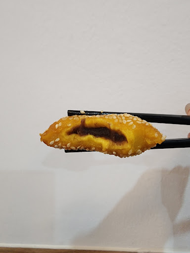 The pumpkin pancake was about 1.5 cm thick with a bit of red bean paste inside. It wasn’t too sweet and was fried with sesame, giving it a great texture. I liked it so much that I ordered a second portion!