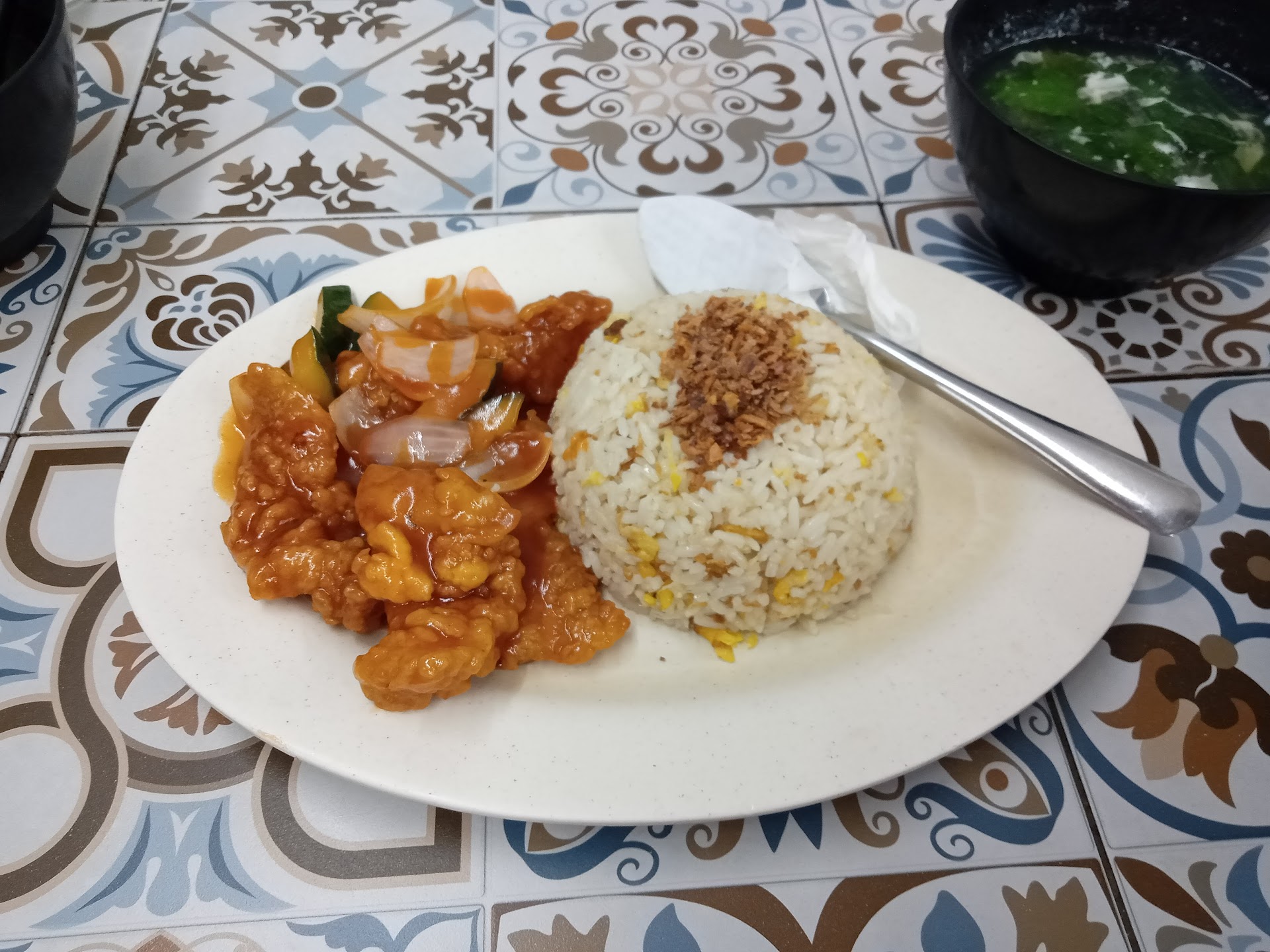 Was wandering around that area without a clue to where to eat.. there are so many restaurants here just didn't know which place to pick.. so i left the picking to my wife and we ended up here.. although it was a random selection, we were extremely happy with our choice.. to start of, the restaurant is small.. but it is well lit and clean.. they even have the covid 19 sop in place so it was good. After we got seated, we were presented with the menu card.. there is not much variety.. just variance of pan mee and fried rice.. their focus was on the pan mee actually. most of the dishes contains pork, so my wife chose sweet n sour fish fried rice, and me, their signature pan mee.. as for drinks we ordered barley and mango yoyo smthing. The food arrived fast. We probably waited less than five minutes, which was pretty decent waiting time.. the pan mee comes with soup and it was delicious.. the crunchy anchovies together with the mee was fantastic. If u want to add spiciness, then just add the chilli yourself up to your preference. The fried rice was not bad.. light but tasty. The portions served was just right. Not too little or too much, and that made those meal enjoyable.. as for drinks, it is above average. I must compliment their barley though cos it was super thick and rich, you might confuse it for soya.. i mean they really give you the real deal, instead of diluted ones inmost chinese restaurants. Price is reasonable for the quality of the food and service we got.. talking about service, we appreciate the attentiveness to details and professionalism shown by the waiters there.. my wife just gave birth and the waitress was careful not to serve cold drinks to her and directed her to warmer options.. we also requested for fork and spoon instead of chopsticks and they happily provided them in seconds. Most would just talk about food, but i like to take into account everything else that comes with it, especially service, and they excelled in it.. will i come again? Yes.. will i recommend this place to friends n family? Hell Yeah...