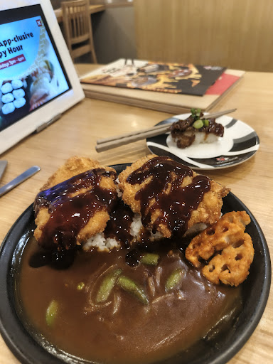 Food wise (salmon teppanyaki & curry udon), okay. Sushi on...