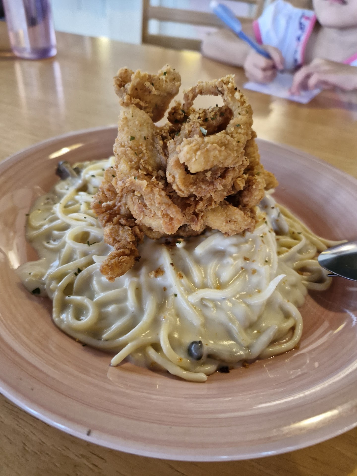 Overall food taste, presentation and portion was good. The waffle and chicken were crispy. They added peanut butter sauce on the waffle by default so do tell them in advance if you don't take peanut butter. The salad was nice with a mix of fruits but i think there's also some peanut butter in the sauce other than cranberry sauce. We ordered the today special kopi and also the salted kopi. We were a bit clueless if there's a special way to mix the today special kopi but they said its up to us. I like the salted kopi. Service could be improved - we had kids who were drawing and was told to be careful and not draw on the table even before we settled down. It could have been conveyed in a more friendly manner, after food order was taken so that we at least feel welcomed. If not for this, the overall dining experience was good. Reasonable price for good food with a nice...
