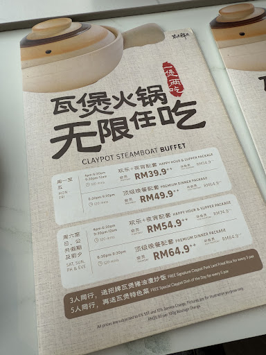 Read moreIf you’re planning to visit, be aware of the pricing: RM39.90 on weekdays and RM54.90 on weekends (excluding taxes) per pax. When we made our booking, we were only told to arrive before 6:30 PM to get the RM39.90 rate, the person did not mention of the weekend price. That was a frustrating surprise.