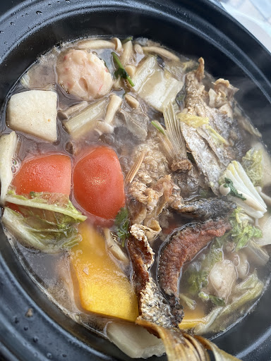 Now, let’s talk about the food quality. Honestly, I have no idea why there are so many 4–5 star reviews. The ingredients are cheap and low quality—processed fish balls and poor cuts of meat. The complementary pork lard rice was sweet, and the pork lard had a rancid taste. We were a group of four and ordered a fish pot, yet a table of two got the same portion. How does that make sense? Should I come alone next time to get the same amount of food?