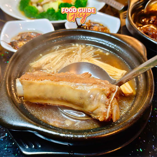 This tropical-themed Bak Kut Teh spot is tucked away in a basement, got that mysterious hidden gem vibe. There's also a little photo corner for customers to snap some photos. The dining area is comfy, clean, and the service is pretty good too. They’ll serve you a small cup of Bak Kut Teh and Malay Herbal Chicken Soup to try before you order, and the tea is free! Bak Kut Teh here has lighter taste, not too strong and not too bland, it's perfect for those who don’t like super heavy flavors, and it's a good match with the Cakoi. The Malay Herbal Chicken Soup has a stronger herbal taste, super fragrant. If you're into heavier flavors, the Dried Bak Kut Teh is the one I personally recommend, it's spicy, flavourful, and got that bit of cuttlefish taste. It comes with scallion oil rice which is super fragrant, and don’t skip their house-made sauces, they really elevate the whole meal. Another must-try here is the Black Vinegar Pork Trotters, I usually don’t like it too sour, but theirs is just nice because balanced and tasty. I also tried the Fresh Mushroom & Broccoli, simple but tasty. If you drop a Google review for them and you'll get FREE Fried Durian, it's crispy outside and...