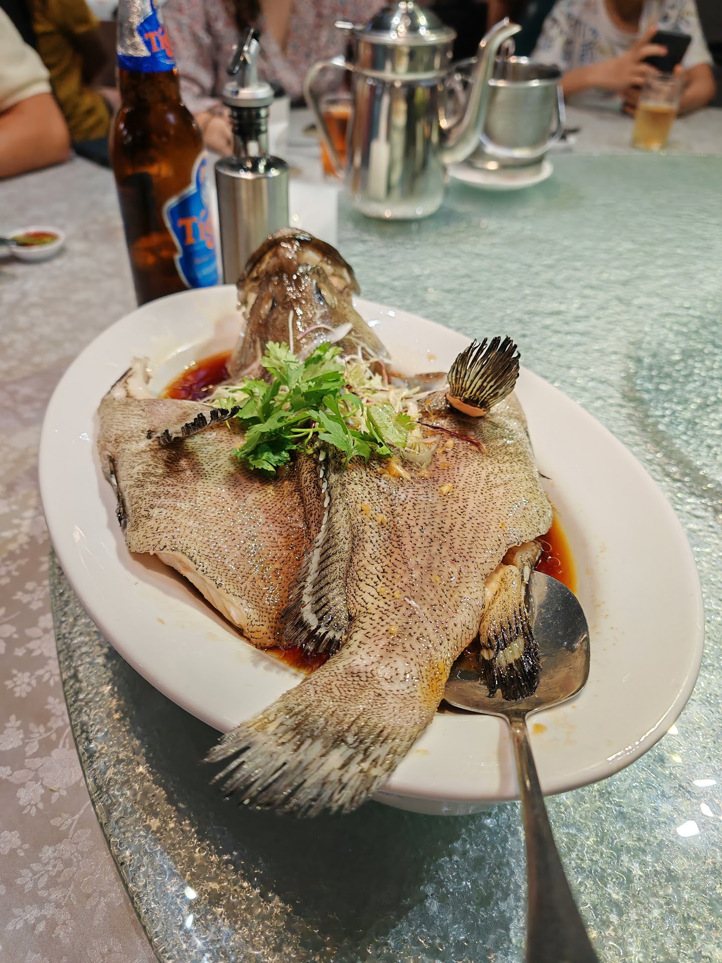 6.30pm- we placed order of ginger steamed fish, curry mixed vege, and 2 warm water.
