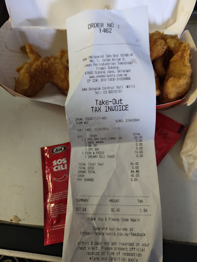 Another long wait later, they finally handed me my order—except it was incomplete. Half of the fried chicken wings were missing. I pointed it out, and they told me to wait again.