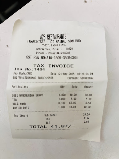 When you go to any restaurant in India, especially South Indian restaurants the moment you take the seat, the first thing happens is they greet while filling a glass of water of for you to settle down, this exists even in AAB Chennai, strangely nobody is there in AAB KL to do this kind gesture. If you are going to AAB Masjid Jamek outlet then you go there only for the cook, who ever is the cook he/she doesn't compromise on the authenticity of the South Indian food. Other than that this place needs lot of improvement in each and everything you see. Especially the supervisor and servers they are least bothered about customers, no courtesy, customer service, common sense, it looks very clearly that the supervisors and servers are not at all interested in working there. They will keep staring outside no matter what happens inside the restaurant, if you are getting hiccup they will not even give you water. They will not remove the plates until unless we request them to take it off. If they know that you are a rich guy then 3 people will attend you. These things I never experienced in Chennai and it's a surprise to see in KL. These irresponsible and undedicated staffs needs real motivation, change in branch or a seriouswarning letter. 5-6 people always lock themselves inside the kitchen not sure why? Please make AAB as good as Chennai branch. This is a SHAME and it's SPOILING the BRAND name. Will visit again to see improvement and of course...