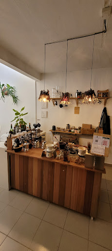 Upon entering the "home", you will be required to remove your shoes before going indoors. You will pass by a space that appears to look like a workshop before seeing a bar counter filled with a dazzling array of brewing tools. Once you're in the cafe space, you can see tables spread across the main living area as well as the rooms in the "home".