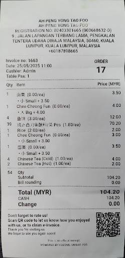 Read moreDine in as brunch on 25.5.25 Plenty free parking Service: self choose n pick up. Pass to cashier n pay after order drinks & noodles. Food: give a try after saw YouTube and Google review however seem overrated. Yong tao fu so-so only d fish cake rm3 per pc is good. Price: rm1.80nper pc cheapest in market but portion small. Likes 2pc = 1pc compare other e.g. Peel Road (rm2.20 per pc) and ampang Yong tao fu. No...