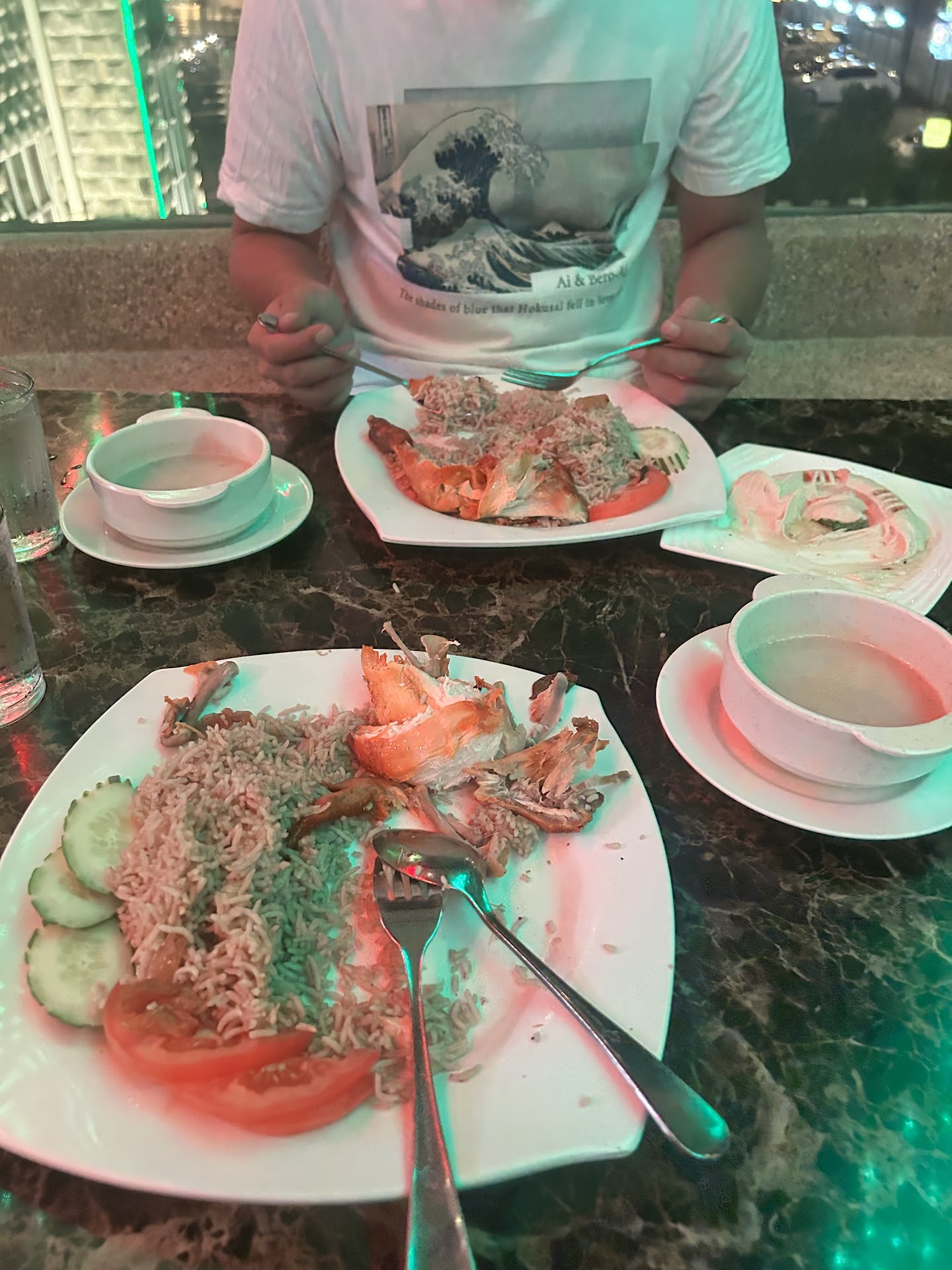I recently visited Al Rawsha Restaurant in KL with high hopes for a memorable dining experience, but unfortunately, my visit was far from satisfactory. I feel compelled to share my disappointment through this review, highlighting three major concerns: the uncomfortable temperature due to a lack of proper air conditioning, the low quality of the food, particularly the stale salads, and the extremely unclean restroom facilities.
