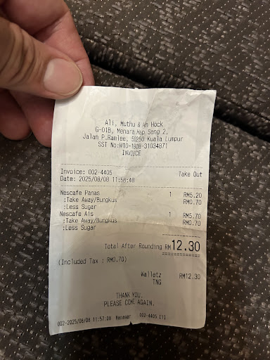 Read moreI had an incredibly frustrating experience at Ali Muthu and Ah Hock. I ordered drinks and roti canai, and while the drinks arrived, my food never did even after 40 minutes of waiting. By the time I tried to complain about my now-cold drink, the staff snatched it away without letting me finish speaking and didn't make a replacement