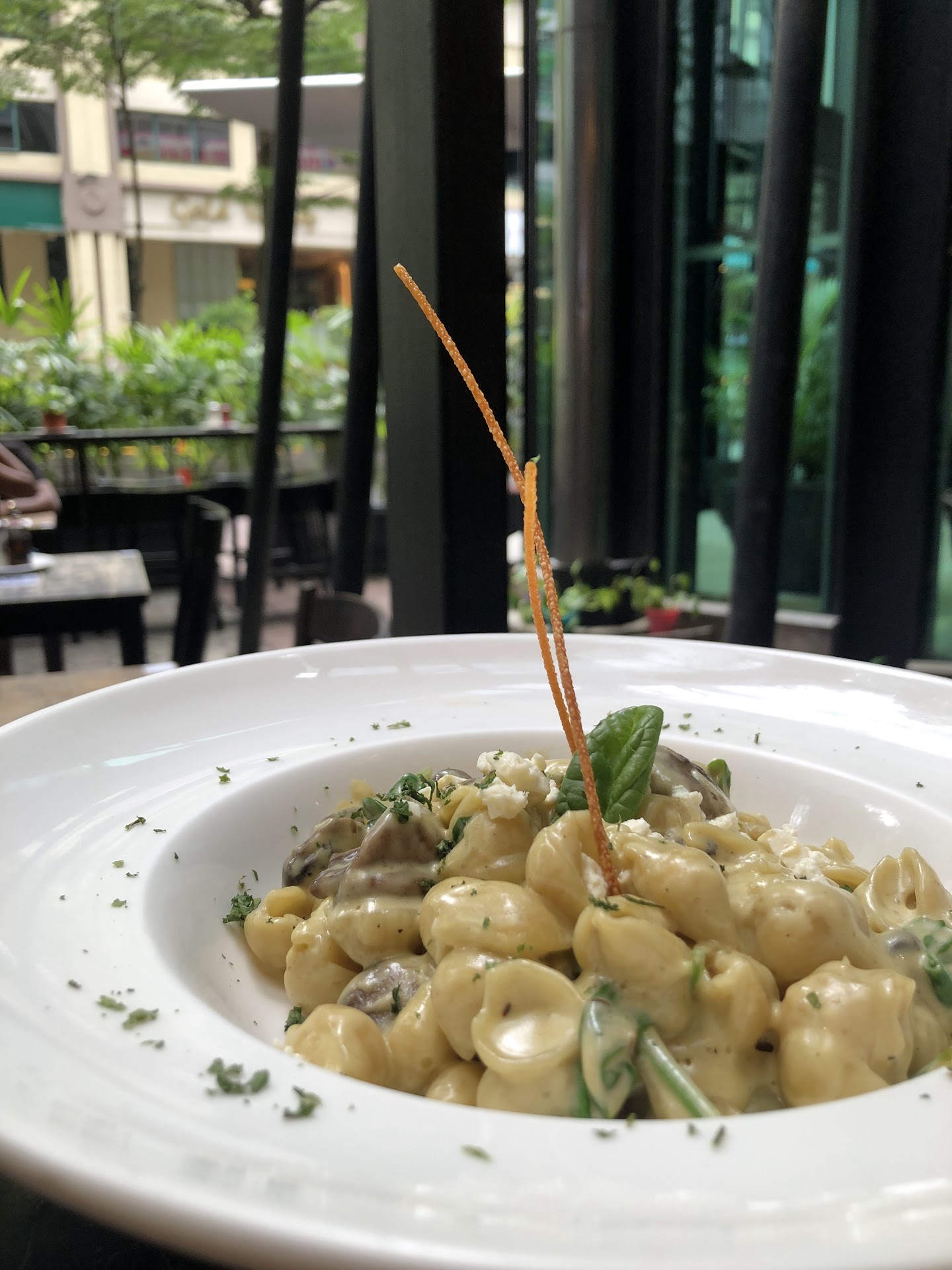 The menu Eggs Benedict—I usually refrain from ordering eggs Benedict or anything with hollandaise after I moved here because they never get the hollandaise or the poached egg right 😅. This one was an exception. The hollandaise was creamy, the eggs cooked perfectly with the yolk oozing out, and the English muffin was toasted just fine! Big breakfast—creamy scrambled eggs cooked just right, hash browns were golden fried on the outside and soft on the inside (was too bland for me, potato wasn’t well seasoned, so ate this with some ketchup), chicken sausage (definitely one of the best chicken sausages and didn’t taste like processed meat), and the fresh lettuce and corn, crunchy toast and butter made it a wholesome meal! Hot chocolate—This was rich, chocolatey and creamy, the chocolate wasn’t too dark and bitter and still had sweetness. Chocolate brownie—The brownie had a crunch on the outside and was soft on the inside, and screamed chocolate and cocoa powder with every bite. Mushroom pasta - pasta was a little bland and had very less salt (I added salt from the table) but has the mushroom flavor to it.