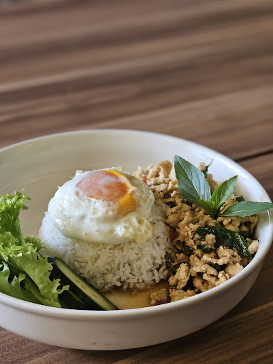 Moving on to food. They have lunch sets every weekday for RM20 and offer thai food during lunch. I got the padkrapow rice. The chicken was nicely seasoned and flavourful, although it looked lighter than the usual padkrapow. Rice was on the drier side; would have loved for it to be fluffier. The ice lemon tea that came with it was surprisingly good. They use actual lemon and actual tea to mix the drink, and not Heaven & Earth. I also ordered a hot cappucino, which was well balanced and strong, as well as a banana walnut cake, which I found a tad sweet for my liking. Service was overall great. They have very well-trained staff.