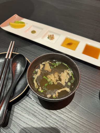 Wagyu cuts were good, ranging from somewhat fatty, medium marbling and slightly leaner. Favourite sauce was the wasabi (with ponzu?) and the red spicy one. The lemon and lime wedge looked a little out of place, but I tried a squirt of lime with the wagyu and it DID add a zesty zing that paired well to complement the fatty flavours! The Wagyu soup may get differing opinions, with my partner observing it was too plain (like a fellow reviewer mentioned), however I enjoyed the broth-like simplicity which was seasoned well and garnished with spring onions. Tasted almost like a cloudy consommé, I know that’s oxymoronic but…. Hey!