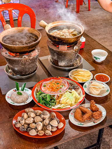 This hotpot restaurant is located in Kepong 📍, and it's a "special" hotpot place that we don't usually come across 🍲. The main reason to visit is to try their la la (clam) pot 🍲, which is cooked in a clay pot over a charcoal stove. If you sit close to the stove, you might feel some heat🔥. We were advised to sit outdoors 🌳 where it's more ventilated, and luckily, the weather was good 🌤. At first, the soup tasted a bit bland 🥣, but after adding a few rounds of alcohol, ingredients, and more soup, the flavor became much richer and tastier 👌🏼. We also tried their mild spicy oil soup, but personally, I didn't find it very good 🤔. You should give their shrimp paste a try; it's quite decent 🤌🏼.