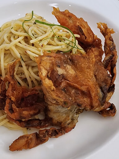 Sukiyaki (with kampung chicken) was delicious. Ingredients were fresh, soup was light and they refilled the soup once. We liked the lamb too; it was nicely marinated and cooked to our requirement (medium). The soft shell crab on the pasta was crunchy. Pasta (aglio olio style) could have done with a bit more garlic. The mango salsa salad failed the test. For starters, the base of the salad should have a simple dressing say extra virgin olive with a squeeze of lemon. The mango salsa itself lacked oomph and got lost in the plain salad leaves.