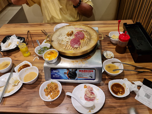 I recently visited this bar b q plaza at level 3 BTS for mookata buffet dinner. While the food was generally good, the overall experience left a lot to be desired. The atmosphere and environment were far from enjoyable. The seating was incredibly narrow, making it uncomfortable to move around or even sit for long periods. It felt cramped, which significantly detracted from the dining experience. Their seemingly table of 4 can only fit 2 people comfortably. Imagine the table is a standard size table, with a cook top on the table plus whatever raw dishes ordered on the table, it pretty much leaves no space for my personal plates and bowl. Can't really enjoy my food in this cramped environment.