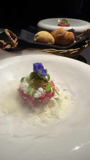 A delightful surprise awaited us in the form of a watermelon tartare, boasting a vibrant and refreshing flavor profile, adding a unique twist to the meal. Moving on to the main course, the impeccably cooked lamb delivered a burst of juicy, flavorful meat with a pistachio undertone, although the accompanying grilled vegetables felt somewhat lacking in boldness.