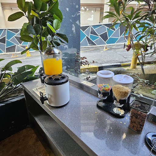 Food selection is limited. Malay rice cake (like the ones we eat with satay) is extremely cold, like taken out from the refrigerator. Nasi Lemak is cold too. Only soup for noodles, an orange looking soup and a dessert are kept in hot boilers. All food dishes have no label, so I have to guess what they are by looking at them. Cakes and dessert do not taste good, the cakes are hard, dry and sweet. Black coffee prepared in dispenser has pre-added sugar and only served in the local dishes inner dining area. I had to go out to find milk to add to my coffee as there were only creamer powder and sugar beside coffee dispenser. Only 1 juice looking liquid is available. I took a sip and left the syrup water untouched. No label, can't tell what is the yellow liquid, just tasted like artificial sweetener drink.