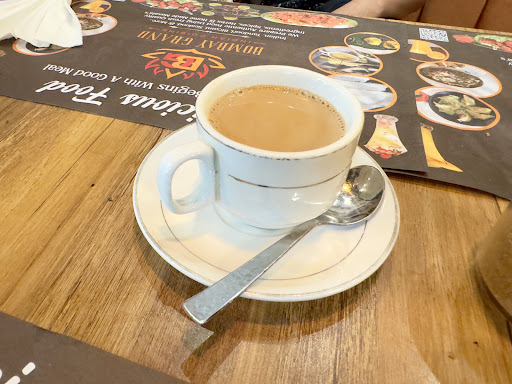 The food here is fantastic. We had a chicken korma and a mutton gassi. The korma was particularly good. However, it came as chicken meatballs rather than cuts of chicken as I expected. This is fine as I really enjoyed the meatballs, but I feel it should be clarified on the menu. Most people will be expecting chicken cuts. The mutton gassi was lovely and rich. I have had better mutton but it was very good. The cheese naan was perfect, and easily the best priced dish we had. With the curry we had steamed rice. Steamed rice, for one person, is 12 ringgit per portion. This is ludicrously expensive for plain, steamed rice sufficient to feed one person. The curries were around 30 ringgit each, and to be honest, for that price we expected at least 50% more meat and curry. The total bill is then subject to 6%sst and 10% service charge, so 30 ringgit becomes 35 ringgit, and a single steamed plain rice is almost 14 ringgit. Comparatively that is almost double what we have been paying in many other places that are frankly, just as good and provide more food. We haven't eaten in this particular area of KL before so maybe it's more expensive, but we have eaten at a number of other similar restaurants across the city and the country which are similar quality, and they have been significantly more affordable than here, usually by about 15-25 ringgit per person and the portion sizes were much bigger. Water price is 5 ringgit for a small bottle of mineral water which is absolutely fine in a restaurant. I had a cup of tea, which wasn't the best, but it was still nice tea.