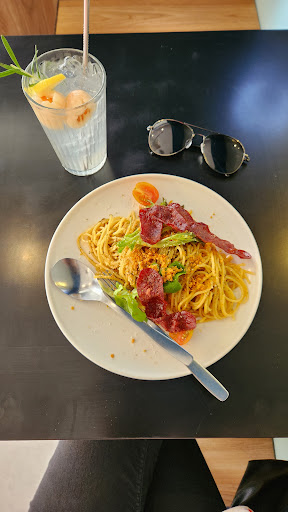 Beef Aglio Spaghetti (9/10) Itās really good! I finished my plate! The pasta has a balance taste! Balance in between the spiciness of the chili flake and also the Italian herbs! The Streaky Beef is really crispy and well seasoned !