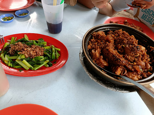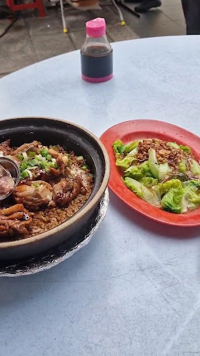 This stall is by the road side. There is some space for dining area. Big enough place for 6 tables. Glad to see them using charcoal stoves. We were there about 5 pm and the sun was still quite high. There were not enough shades for the dining area. Ordered a big size claypot rice with salted fish. Came at no time. I like that the salted fish came separately on a small plate. Easier to mash and mix into the rice. A lot of other shops will add in the salted fish and it will be in lumpy pieces, even after mixing up the rice. Overall, the taste was delicious. Portion was enough for 2 pax to share. Ingredients were marinated chicken, chinese sausages, spring onions and optional salted fish. Perfect with a slight burnt crust at the bottom. They have a few options of veg side dishes and soups. Blanched lettuce with oyster sauce topping was crunchy. They also have a few choices of beverages like herbal tea and grass...
