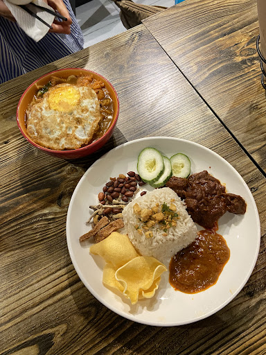Read moreCame in here by chance to hide from the heat while walking through Little India in KL, and we were not disappointed! The owner was so kind throughout, and even turned up the AC for us. I was super happy to find vegetarian nasi lemak on the menu, as I had been wanting to try the Malaysian classic but don’t eat meat. I went with the rendang mutton version and was not disappointed. It was very delicious, my only complaint would be that the cucumber slices didn’t taste that fresh. My friend ordered the vegetarian curry laksa (not pictured) and found the soup to be a little too heavy compared to what she’s used to (maybe because of the curry component?), but she still liked it. My other friend had spicy kimchi ramen with egg which she liked, but they could have been a bit spicier. We all ordered watermelon juice which was nice and refreshing. Overall a surprising gem, especially for vegetarians wanting to try...
