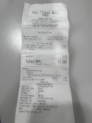 Read moreThe most horrible Bungkus Iâve been to. when I approached the guy at the cashier, he told me to WAIT for him before ordering because he needed to susun the receipts. I donât understand why he prioritized that issue when he was supposed to take customerâs order first. After that I waited for almost 15 minutes for a the kaya+butter toast and boiled eggs. The staff were simply chit chatting casually and some of them at the counter didnât bother to speed up the pace KNOWING there are many people waiting in line. But it is very obvious that they donât care. one of the male staff accidentally spilled a drink at the counter so they had to redo the drink and cleaned the mess. Once they were done, the male staff SUDDENLY pulled my food from the counter that was actually sitting there the entire time. Basically I waited so long for my food only to realize it was already settled. It wasnât monitored or announced. It was ignored. In the end, they got my order wrong anywyas. I got Kaya and peanut butter instead. Not surprisingly, my bread was cold. Please either change the team or tell them to step up because this wasnât the first time it happened. I work in NU Sentral and have firsthand experienced their attitude from time to time But today was simply the worse one. Why on earth would you hire...