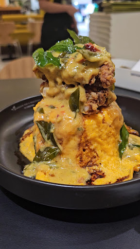 I didn't know this place is so convenient it's located right in the smack of Petaling Street almost close to the junction. Saw reels of this place on social media and quite attracted to the food they serve and decided to pay a visit. Visited on a weekend afternoon slightly past 1pm and it was rather quiet with not many customers. Was handed the menu and I have to say the spread is really good and I was at a loss of what to eat. Took some time to decide on several items fearing that I might not be able to finish, so I ordered the Omurice with salted egg and chicken chop, the half boiled egg with kaya toast and a iced tea. Food was prepared and served very fast and the portion was quite big. Thank god I didnt order too much and I still struggled to finish everything. The Omurice was better than I expected. Loved the watery scrambled egg covering the rice and then topped with 2 chicken chops and then a layer of salted egg sauce. So sinful but so delicious. I also enjoyed the rice as it was not plain rice and was nasi lemak instead with a slightly sweet taste. The iced milk tea was not bad, tasted pretty old school which initially I thought might taste Thai style but it didn't disappoint. It wasn't too sweet either. Lastly the half boiled egg was okay but it was more than half boiled almost close to being cooked. The kaya toast was not bad, I seemed to enjoy the butter more than the kaya. The first piece was quite crispy but the subsequent pieces tasted soggy and also the toasts were a little too thick for my liking, and I also didn't like the way it was cut that made it look like a stick. Overall still quite enjoyable, too many things on the menu I wanted to try so will definitely try to visit again. Prices are quite reasonable so...