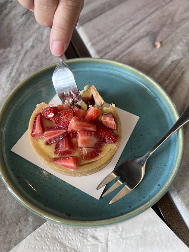 Service started off impeccably, with attentive staff making us feel welcome. However, after ordering our desired foods, we experienced a significant delay just for the pasta. Apparently they overlooked our pasta order but the rest of out orders were served promptly. When it finally arrived, the pasta was unfortunately too salty, and I had to send it back. Despite this hiccup, the staff's prompt and sincere response, including a personal apology from the manager and a complimentary strawberry fruit tart, helped ease the frustration.