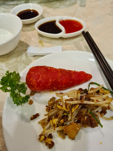 Food wise was acceptable. Had a combination of dimsum and fried noodles. Dimsum is ok with very fresh prawn fillings. The restaurant chef probably wanted to add creativity or twist to some of the dimsums with the hamsui kok shaped as a carrot (poc attached) and creamy custard buns had added swirling design. Traditionalist like myself may not like it. The order of hokkien noodles was a letdown though. It was a far cry if one was to compare to the better and cheaper offers by the streets. Siew yok is very good with a good balance of meat and fats but the char siew was a tad too lean hence making it hard. Quality of chinese tea was good.