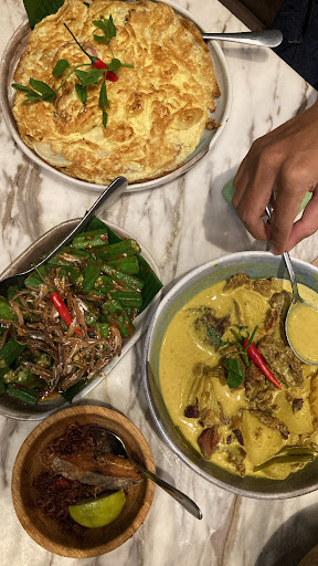 Came here for dinner to celebrate my sister’s birthday because my mom recommended this place. I was a tad bit too early for my booking slot at 8:30pm but despite that, the wait to get my table fixed and ready for us to sit at was done at an instant. Props to them for being quick on their feet with that(literally). We were attended by this amazing and very friendly guy named Haris. He was very attentive throughout the whole evening and made sure that each and every single one of us had our orders down and ready to go. Definitely would come here again just to experience Haris’ hospitality hahaha. Give him a shoutout for me and make sure he is aware that his name is being mentioned in this review for his excellent service! Food wise, since we were sitting right below the air conditioning unit, our food became cold at a faster rate however the flavour definitely compensated for that issue because everything that we had ordered tasted! The portions were big enough for my family of 6 to share and still had a bit of extras leftover after our meal. Drink-wise my sister ordered the teh susu ais and as someone who loves teh ais, i have to say that it is more on the sweeter side so if you dont have a sweet tooth you might wanna ask for the least amount of sugar that they are physically able to put in the drink because it was still sweet when my sister had already ordered for her drink to be less sweet. The kopi kampung ais that I ordered was also on the sweeter side of things but I am totally fine with it and finished my drink down to the last drop. We also got the cendol and onde onde puding bakar and I definitely recommend getting those because despite their drinks being on the sweeter end, their desserts were flavoured just right to get you to taste everything that goes on inside it! The ambience and atmosphere of the whole place was also really nice and pleasant to dine in. Definitely a good place to have a date or even a family dinner. There were three separate birthday celebrations (including my family) happening over dinner and the place puts on a happy birthday song over the speaker so if you’re planning to celebrate someones birthday here , expect that to happen when you come later on. Overall I’ll give it an 8.9/10, definitely worth trying!