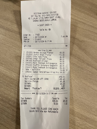 I booked a 8.30pm time slot on Valentine's Day and arrived on time. But when my girlfriend and I arrived, no one greeted us or told us where we were supposed to sit. We had no idea where we were supposed to sit until we went to the front desk to ask, they told us we were upstairs and gave us a “table number” and called us go upstairs and find the table ourselves, but didn't tell us it was the second or third floor. Okay, that's fine, we went upstairs ourselves. When we went upstairs, the funny thing happened, there were no numbers on the tables...how could we find our seats...there still no staff to lead us to the table, even asked few staff...we just stood there like the clowns.