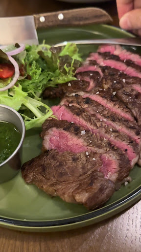 Once I walked in and the staff was super friendly and helpful. They gave us menu and didn’t pressure us to take our order. About 10mins or so I ordered their signature secret steak (270g) Gran Fed Angus Ribeye I Mixed Selad 1 Choice of one sauce which I took the Chimichurri. I also ordered signature grilled chicken chop, Argentinian Striploin Steak (220g) Grain Fed Angus Striploin mixed Salad one sauce, house Caesar salad, sourdough and mashed potatoes.