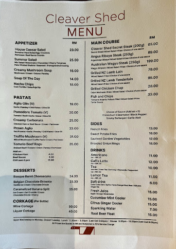 I really enjoyed my experience at the cleaver shed and would recommend this place to anyone looking for a western place to eat. Price wise was very very fair. Would definitely come back here whenever I'm back in KL. Thank you chefs! You guys...
