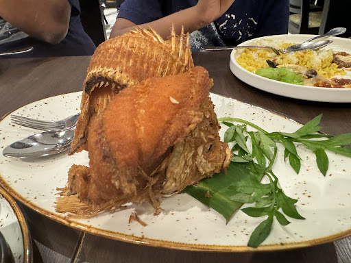 The first dishes (grilled squid and omelette keraby) took over 30 minutes to be served and no one warned us of possible delays with the food. By the time the next dishes came, our first 2 dish were already cold. We were not even served the right dishes, instead of getting the grilled fish with the red and green chilli sambal, we were served with the grilled fish with a tamarind and shallots dripping sauce, we were not warned or apologized to about this mix up in the order. It was just served as if they didn't care about what we wanted. And to make matters worse, we order 2 portion of their gulai pucuk paku and got none, instead they decided that we might have wanted some other vegetable dish. I do understand that maybe they had no more paku (fern) in their kitchen to make our dish, but do let us know before deciding that we would want that other dish. When we asked about the dish that was served the waiter simply said that someone was supposed to have come and talk to us about the change in dish and that he expected us to be aware of it.