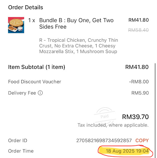 I complained, and Dominoās response was just a copy-paste template with no real solution. Their so-called "compensation" was a voucher, but even after I rejected their response, they just sent another generic reply without addressing how they will actually fix the problem.