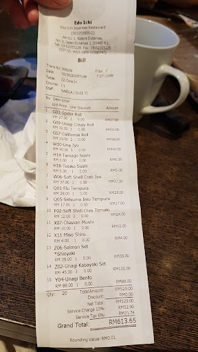 The Overall was so sorry, we are Not Happy to enjoy food at Solaris Edo ichi branch, not feeling welcoming from here, much of dissapointed. Wont come back again. Not value to spend money for here.