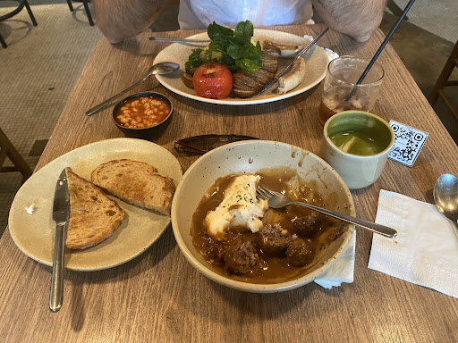 Also had the beef sandwich. It was decent but the beef was too tough. Could be better if itโs more tender. It does not come with sides. Expensive for what it was. Lastly, sunny side up eggs were over cooked. Screw up the easiest thing to make. Overall bad service and mediocre food. However it could be due to busy day. Maybe the food and service could be better on less packed days. One of the staff was even telling off other staffs in the restaurant to stop staring and...