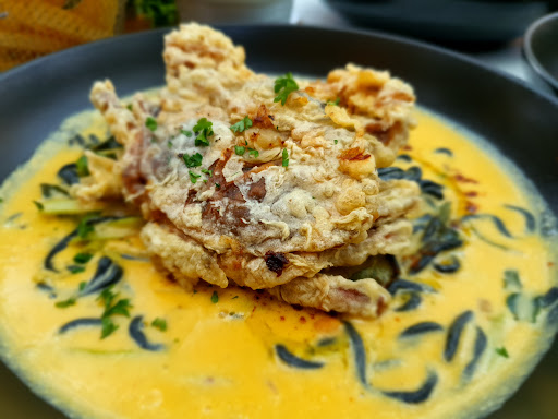 Ambiance was pretty alright. We ordered a main each and a Traditional Paella to share. The texture of my Squid Ink Spaghetti with Soft-Shell Crab could've been good but it lacked that firm and slight chew that's expected of spaghetti. The salted egg sauce and deep fried soft-shell crab was alright.