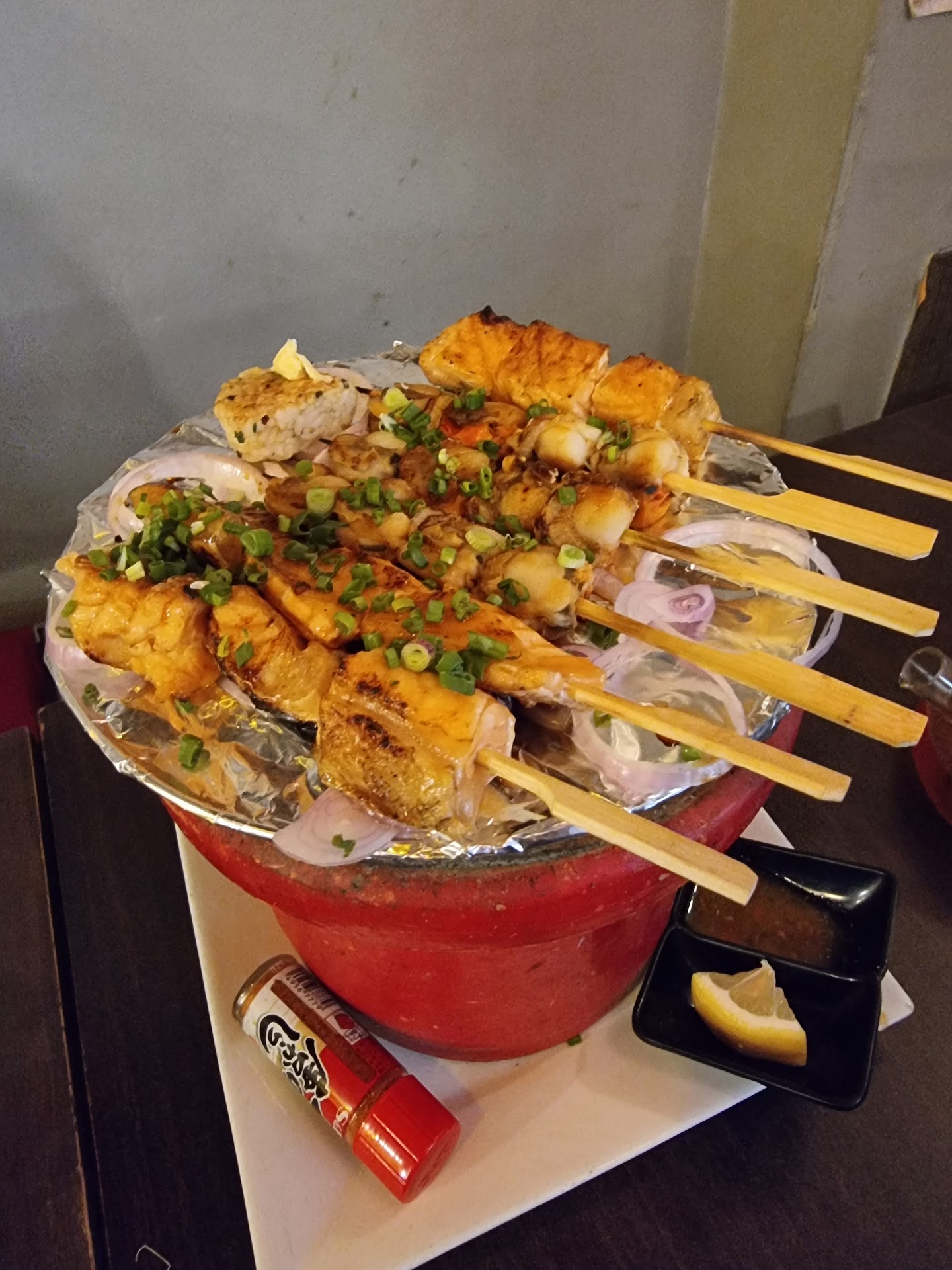 Read more🌟🌟🌟🌟🌟 I had a great experience dining here! The skewers were beautifully grilled and full of flavour — especially the fish and chicken skewers, which were tender and juicy. The presentation was unique, served on a hot plate with foil and onions, keeping everything warm and aromatic. I also enjoyed the grilled rice ball and the tamagoyaki (Japanese omelette) with bonito flakes on top — delicious! The portion was just right, and the atmosphere of the restaurant was cozy and welcoming. Highly recommended if you love Japanese-style skewers!