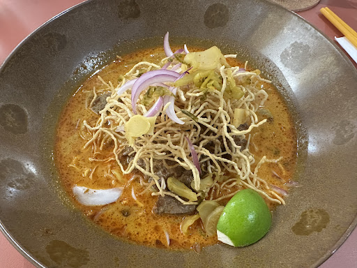 Read moreThis is a tough one to review. On one hand, the service, environment and even the food were generally good. On the other, the food’s quantity and/or quality didn’t really justify the prices we paid. I had the beef khao soi, as per recommended by some tofu-insta-foodie. I am a khao soi lover, I can’t leave BKK without at least one bowl of it, and hunt for it in CM. So naturally I come here with much anticipation. I honor each cook’s vision of khao soi, but this is simply not to my preference. While the taste was good, the portion was measly. The broth is on the thick side, served more like a sauce, which is not to my preference. The noodle itself was way too soft. Condiments are all added into the main dish, not separated, another minus to me. While there were enough bite-sized pieces of beef, still it doesn’t warrant the price charged. My dining partner had the fish ball/cake noodle, imported from Thailand every week. While it was good, at the end, it’s a bowl of noodle with processed fish - Thai style - Fullstop. Then came the chicken wings, which was the best thing to eat. It was proper crunchy and yummy, one of the better ones in KL. Lastly, we had to try the thapthim krop, again for the price the size was shockingly small, and the taste nondescript. To summarize, you really need deep pockets to dine here. Nothing was really elevated, just Thai street food done good, in a restaurant setting. It left me...