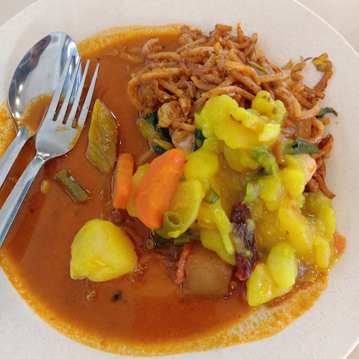 Overall, my dining experience at this restaurant was disappointing due to poor service despite the delicious vegetarian food they offer. I visited for lunch and was impressed by the taste of their dishes, but the service left much to be desired. When I arrived around 11:30 am, all staff were busy preparing grab food packages, and I had to approach one of them to ask if they could provide a similar package with compartments for my food since I was going to eat later in the evening and didn't want my side dishes to get soggy in the rice compartment of the container they provided me with. The staff didn't seem to understand my request and instead gave me a plastic bag which I found frustrating and unhelpful. I had to pack my food myself without any guidance or assistance provided by the staff.