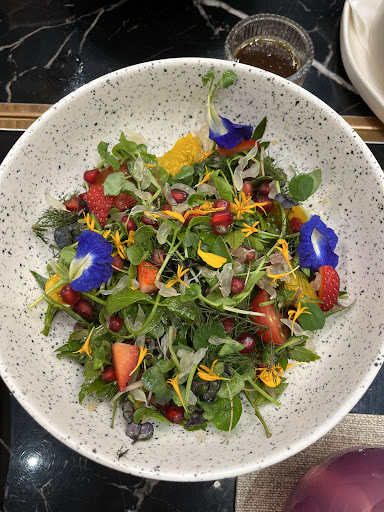 Credit is due not only to the front-of-house team but also to the back-of-house staff. The presentation of the dishes is visually impressive, and the sauces, pita, and fruit juices are especially flavorful.