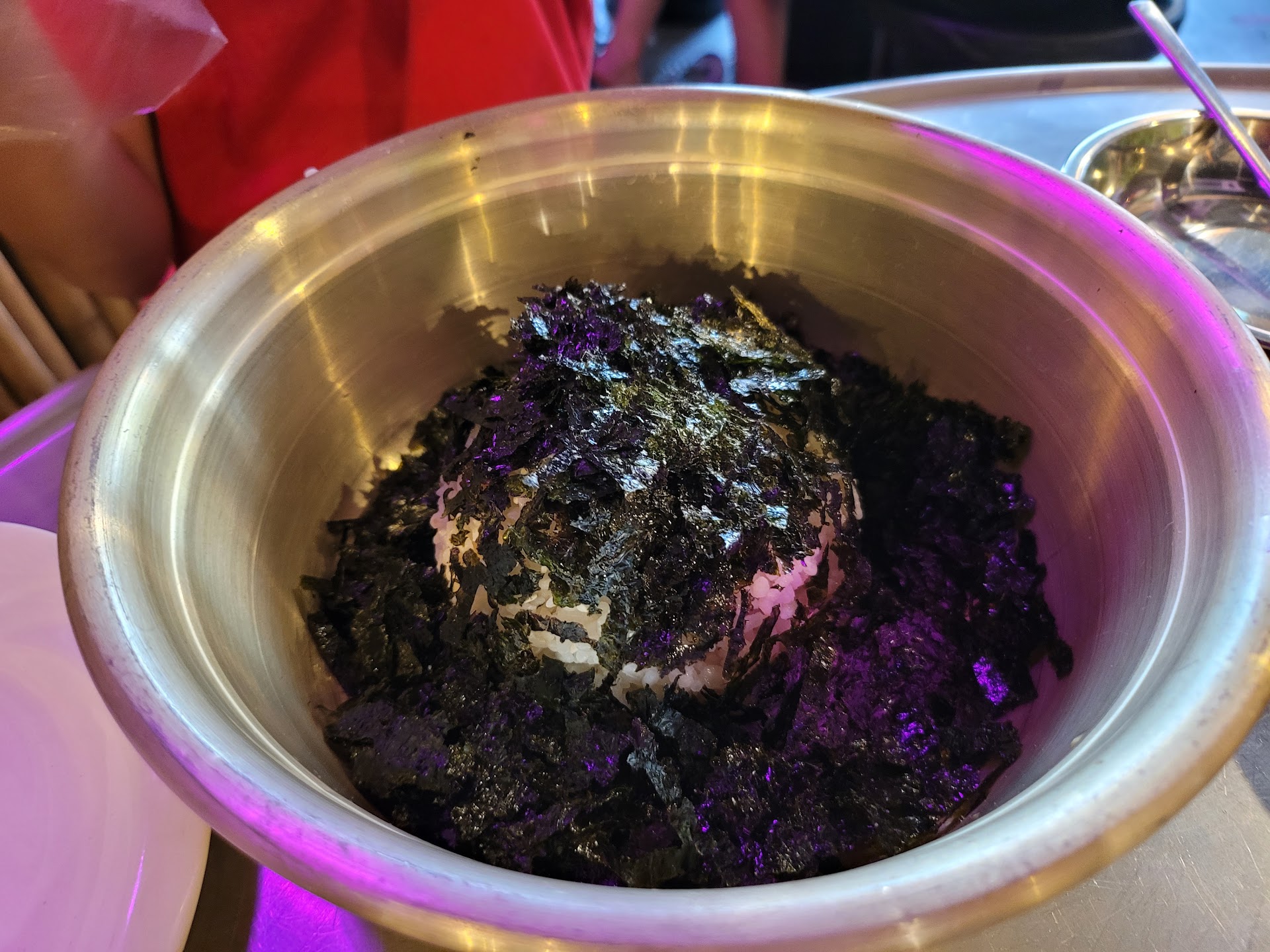 The somaek tower. First time drinking somaek made by a restaurant and im dissapointed. Its as if they just put 3 bottle of tiger beer and only half bottle soju because it was so bitter and wasnt smooth to drink.