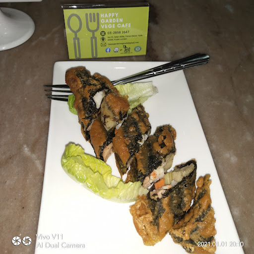 Food is okay, price isn't too bad. It's nicely decorated and played soft acoustic music (at least the time I visited). Large menu with a lot of mock meat dishes, although it is a bit more oily than I like. On a brighter note, food came to the table very fast! It's very easy to find because the outside is very visible and parking is no trouble. Although, the chairs are a bit worn at the seams, they are very comfortable to sit on. However, tissues aren't a very easy access item and I hope this issue gets resolve soon. Otherwise, very nice restaurant. I recommend coming with family and/or friends. If you are a student, this place is a good place for studying as it's quiet and has an assortment of calming beverages.