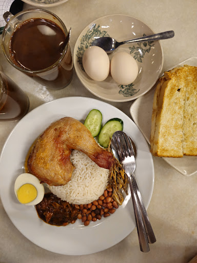 Everyone who travels to Petaling Street or KL Chinatown for breakfast or brunch would have known this hainanese restaurant with a highly rated and an almost legendary reputation. I was deterred many times to visit because of the long queue which is a guarantee here. It also didn't help when the parking here is so limited and because of that, one has to opt for the expensive parking in the area. Today happened to to be that day where I convinced myself to face these challenges just so I could finally try the food myself and confirm if it lives up to its gigantic status. We were first met with a queue but luckily, it was moving fast. Upon seated, we were given the menu and I must say that the choices of food were decent but could have included curry noodles at least. We ordered the nasi lemak with ayam goreng, kaya and butter roti bakar, signature hot cham and hot kopi. It didn't take long for the food to arrive so they could maximise on their customers turnaround. The nasi lemak rice was fragrant, grainy and I can certainly taste the sweetness and the coconut milk aroma. The sambal was sweet, wasn't exactly spicy and I love the crunchy onion chunks. I was also pleased with the fried anchovies or ikan bilis as it was light but crunchy and tasted freshly made. All seemed to be well prepared but then I was completely let down when I tried the ayam goreng. The rempah wasn't aromatic and the chicken wasn't flavorfully marinated and it also wasn't crispy. Frankly I couldn't quite put my finger on the flavors here. The moist and tender chicken meat were the plus points but those alone couldn't redeem the ayam goreng itself from the underwhelming taste. The roti bakar was pretty standard and so were the half boiled eggs. The hot kopi and cham were good. I enjoyed the velvety smooth texture and richness of both hot drinks. All that said, I personally do not think that I will revisit. The food wasn't terrible but rather average at best. Now would I endure the long queue and horrible parking just to have an average meal? I think you can decide for...