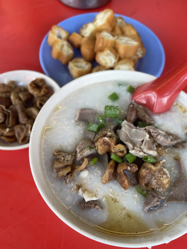 Read moreMore than one year ago, first time I was here I ordered the plain porridge with the raw fish slice. Porridge is smooth and hot enough for the fish slices to be cooked when you add them in. The raw fish is very fresh with lots of ginger and spring onion and no fishy smell at all (love that 😂). It costs me only 6rm. In some other times I tried almost dishes on the menu, and found that Tongue and Intestine Porridge + Crispy innards + Yau Char Kwai is my favourite combo all the time! Made me less craving for "cháo lòng". It costs me 8rm. You may add on Century egg or Salted egg also.