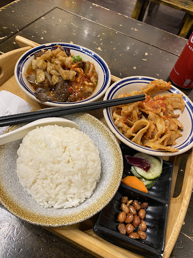 The level of spiciness is just right for my taste, packed with garlicky, fragrant flavors that pair perfectly with the white rice. The eggplant even comes with bits of pork lard, adding extra richness. The set also includes side dishes like pickled cucumber and either peanuts or crackers. Just note that drinks need to be ordered separately, as they’re not included in the set.