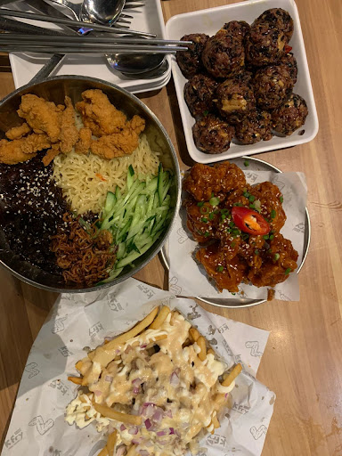 Read moreFOOD: The food is okay, your average good korean dishes, but in my opinion, the jajangmyeon tasted a lil bit bland, and the korean fried chicken that showed spicy, is not that spicy, but the rice ball (not tuna nor ham n cheese) is good. Would recommend that. The loaded fries is average, maybe bit pricey? We choose the one tht has loads of mayo, chicken and onion one. I think it's making you feel queasy? But yeah, that is my opinion.