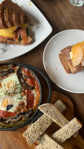 It was our first time here in KHB Bukit Tunku after my friend recommended it to me. The queue took us about 30 mins and it took 3 rounds of searching to find a parking near the roadside. I would say it's easier to get a table if you come in a pair. We were lucky to get a good seat indoor and near the counter. The menu has a variety of options to choose from and as we don't know what are good here, I googled for the suggestions online. Based on my personal experience regarding their service: Someone said on Google review that we can go to the counter to see the pastries and sitting right in front of the display area, I thought like any other normal cafe that we can walk freely to just have a look at the pastries displayed. Right when I was passing by, I was rudely stopped by the waiter named Faruq. He said everyone needs to queue to go to the display counter dining in or not, being confused I explained that I just wanted to see while walking back to my seat with him following me. He seemed unhappy and continued saying I can order from my seat. The thing is I was not even trying to go to the cashier to buy the pastries separately. I think he probably misunderstood me and thought I was cutting queue for the takeaway section. In my defense, both me and my friend didn't even notice there's this takeaway queue. So for no reason, I got told off from the beginning of my dining experience. Even my friend heard him, asked me about it and said his tone wasn't good but we were trying to think from his perspective. Regardless, he pretty much ruined my mood from the start. Just my suggestion, perhaps you can ask if the customer needs help before jumping into the wrong conclusion that affects anyone's mood. Because of that incident, I felt like I needed to ask for permission from the girl standing at the display counter before I could pass through the corridor just to go to the ladies in the corner of the restaurant. However, the Indian guy in red colour long sleeves shirt was super polite and friendly, and the rest of the staffs were also quite nice. Food wise: For the pastry, we'd ordered the peach strudels since I read good reviews about it. The waiter suggested that he served that first before the savoury dishes. I'm glad he did so. Please order some pastries so you have something to fill in your stomach while waiting for the main dishes to be served in a bit. Peach strudels was sooo good, the crunchiness of the flakey pastry skin and the taste was just on point! Highly recommended. Egg flamenco was decent, truffled eggs and smoked salmon came last and I think the waiter forgot to place the order for that dish as it didn't arrive until we asked for it but it was understandable. The dish was quite delicious, with a tad of saltiness on certain bites. All in all, based on just these 2 main course dishes, I would say their pastry is the outstanding one and a must to order if it's your first visit. Coffee were lovely! Environment: The restaurant is quite crowded but can see it's actually quite big and possibly their biggest branch yet. Comfortable place for a meal with your loved ones :) After dining, you can stroll around the shoplots and there's a neighborhood supermarket that you can visit and all the shelves are fully stocked up with a good range of items to...
